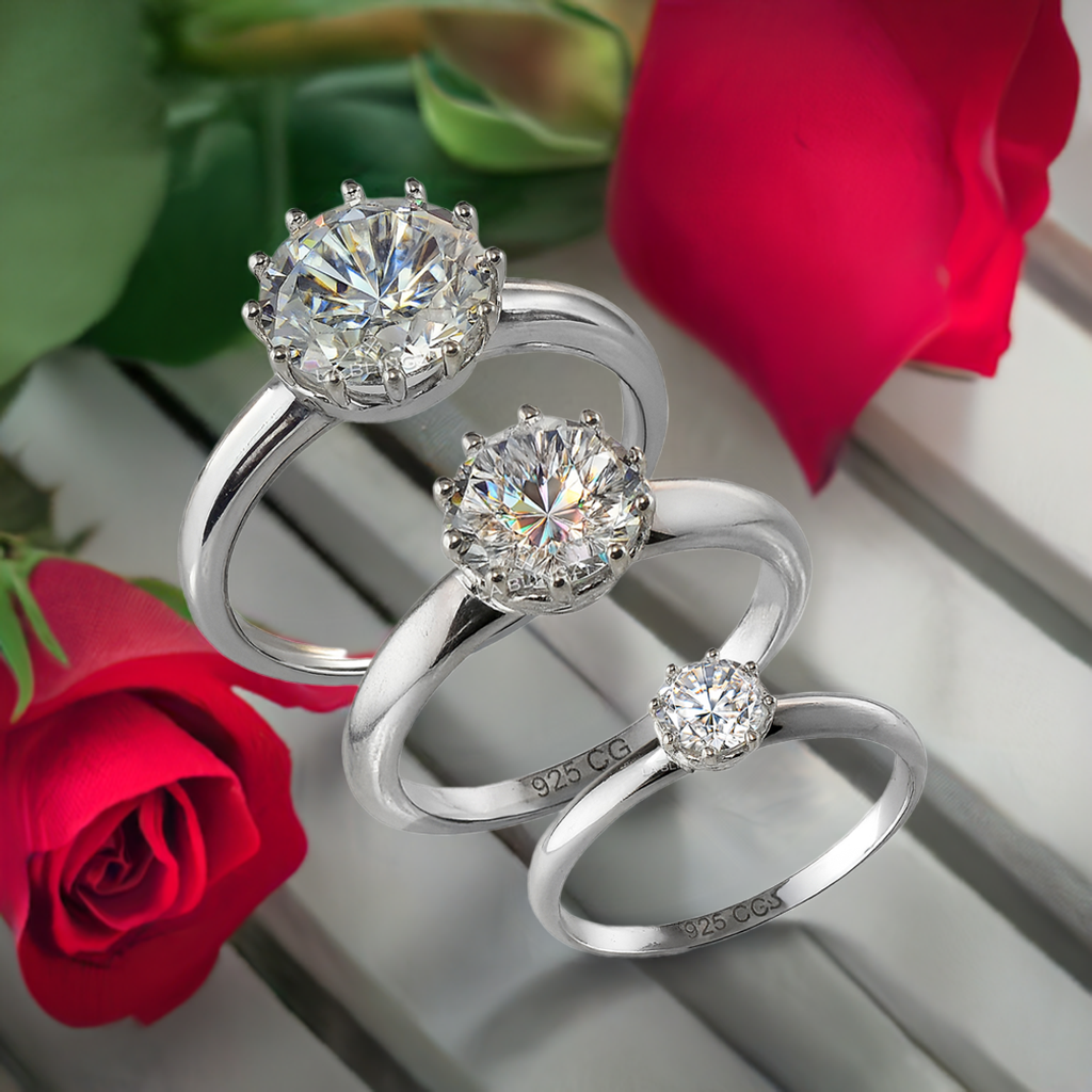 Sterling Silver Nugget Sparkle-cut Heart Ring (Small, Medium, Large)
